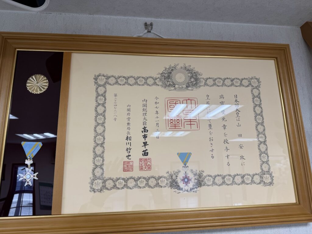 このたび、当事務所の司法書士 山田安政 が、令和7年秋の叙勲において 「瑞宝双光章(ずいほうそうこうしょう)」 を受章いたしました。